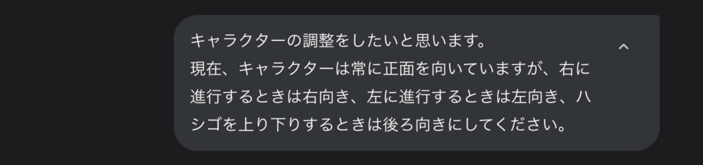 ハシゴの挙動は良い感じになったので、右向き、左向きを実装します。