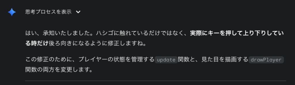 表現が難しいですね。バイブコーディングは説明力が求められますね。。