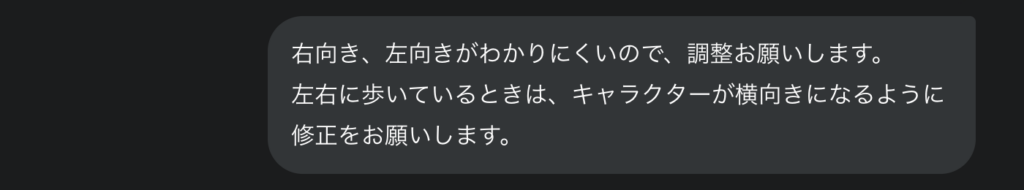 プレイヤーキャラクターが常に正面を向いているため、状況によって向きを変えてもらいます。