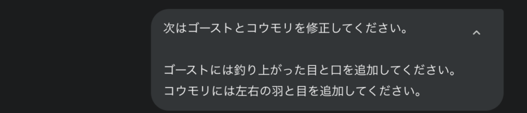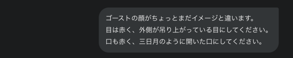 次はゴーストとコウモリに顔が無いのが気になっていたので、顔を作成してもらいます。